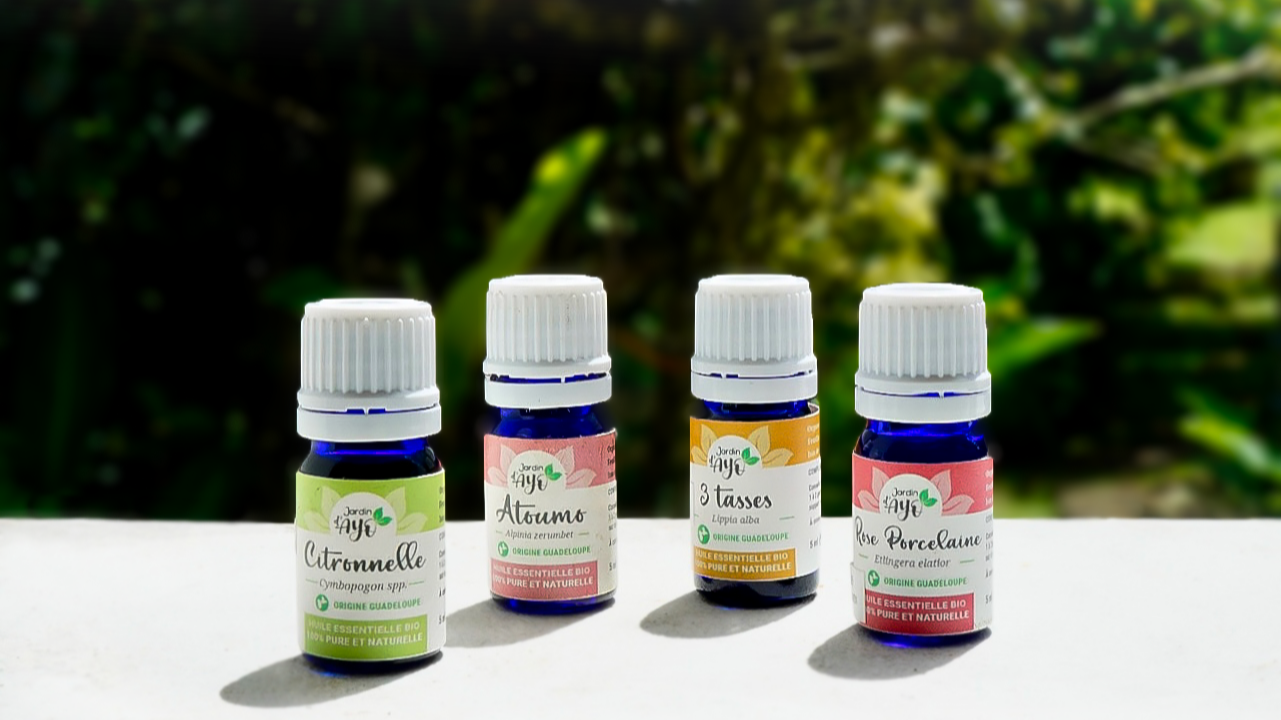 JARDIN D'AYO est une exploitation agricole des Caraibes. Située en Guadeloupe, au coeur de la biodiversité tropicale, nous cultivons des plantes aromatiques et médicinales et les distillent pour en extraire des huiles essentielles, des hydrolats et des huiles végétales.